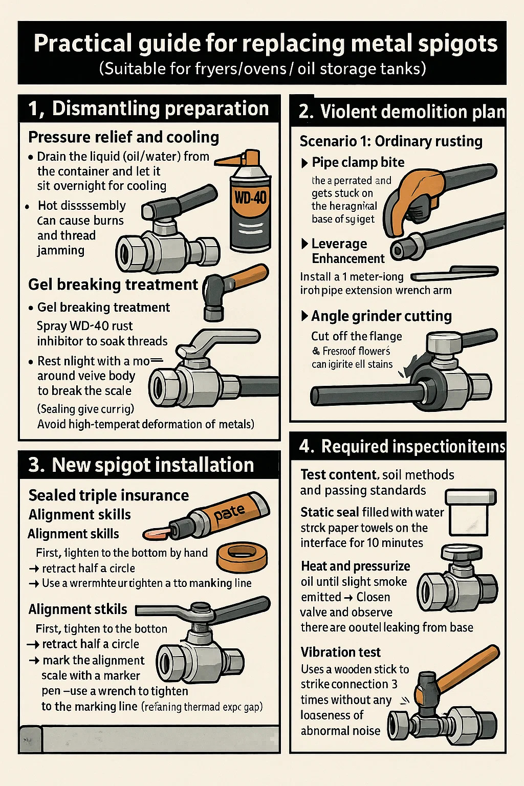 ระบายของเหลว (น้ำมัน/น้ำ) จากภาชนะแล้วปล่อยให้นั่งค้างคืนเพื่อระบายความร้อน - การถอดชิ้นส่วนร้อนอาจทำให้เกิดการเผาไหม้และการติดขัดด้าย