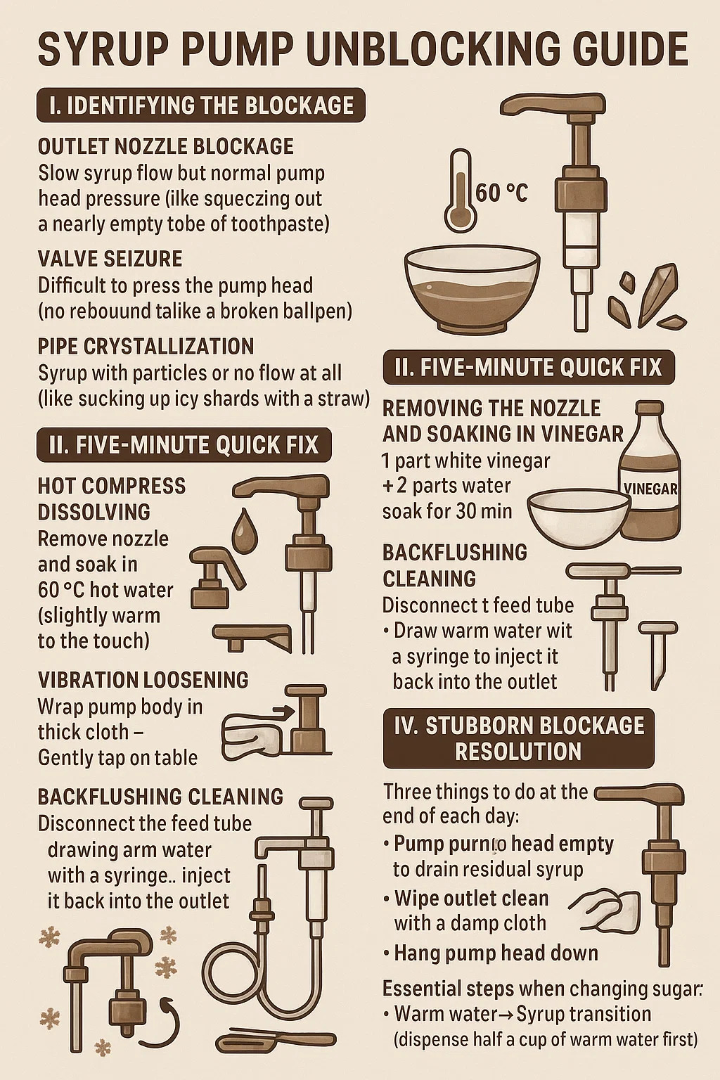 ปั๊มหัวปั๊มให้ว่างเพื่อระบายน้ำเชื่อมที่ตกค้าง