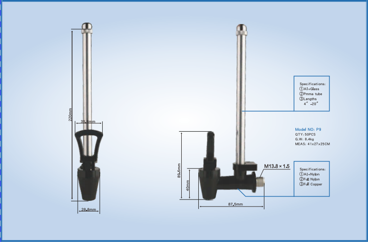 หัวจุกนี้ทำให้รู้ว่าต้องเติมน้ำมากแค่ไหน หน่วยสแตนเลสได้ง่ายขึ้น การก่อสร้างคุณภาพสูง สามารถเลือกหลอดสายตาแก้วหรือพีซีได้ หัวจุกเกรดเชิงพาณิชย์